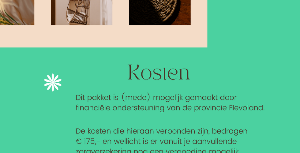 De kosten die hieraan verbonden zijn €175,- en wellicht is er vanuit je aanvullende zorgverzekering nog een vergoeding mogelijk.